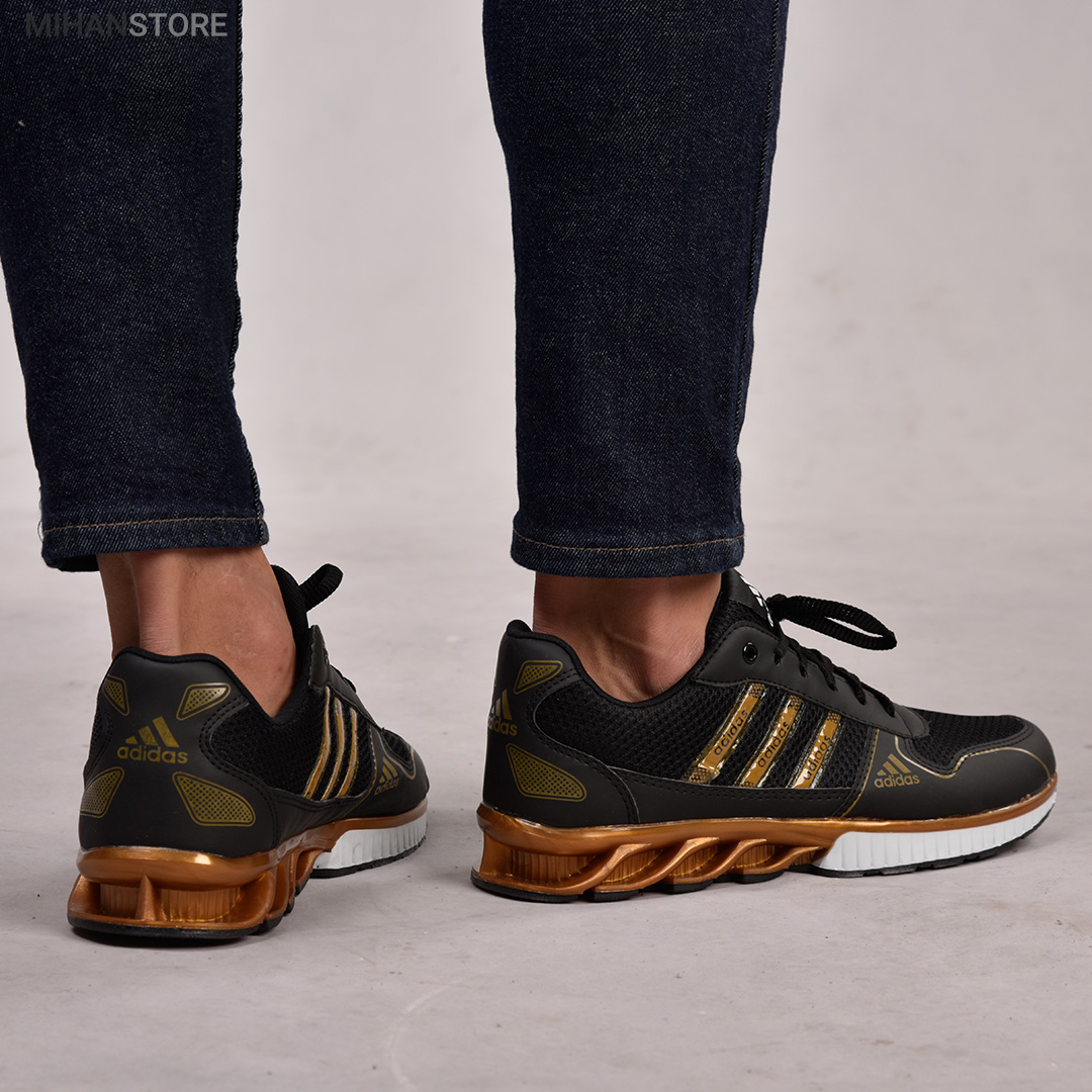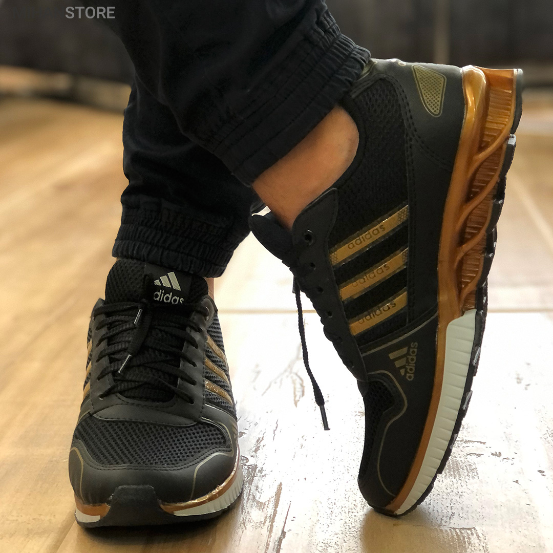 کفش مردانه Adidas مدل GOLD یکی از پرفروش ترین و محبوب ترین کفش های اسپرت از برند معتبر Adidas بوده که جنس رویه آن ترکیبی و بسیار سبک می باشد. این مدل از کفش به خاطر وزن سبک، انعطاف پذیری بالا و راحت و آزاد بودن پا در کفش و هچنین ضربه‌گیر بودن برای پیاده روی، ورزش و دویدن بسیار مناسب و استاندارد است. شما با استفاده از کفش مردانه آدیداس می توانید به راحتی بر روی تردمیل، سنگفرش، موزاییک و… پیاده روی کنید.  رنگ بسیار زیبای مشکی با سه خط معروف روی کفش  شیکی و جذابیت را در انتخاب استایل شما میدهد وبه راحتی می توانید آن را با انواع پوشش های خود اعم از رسمی، اسپرت و… ست نمایید. کفش مردانه آدیداس در سایز های 41 الی 44 به صورت ها کپی از مدل اصلی آدیداس عرضه شده است که در هنگام ثبت سفارش می توانید سایز کفش مورد نظر خود را انتخاب کرده و سفارش دهید.