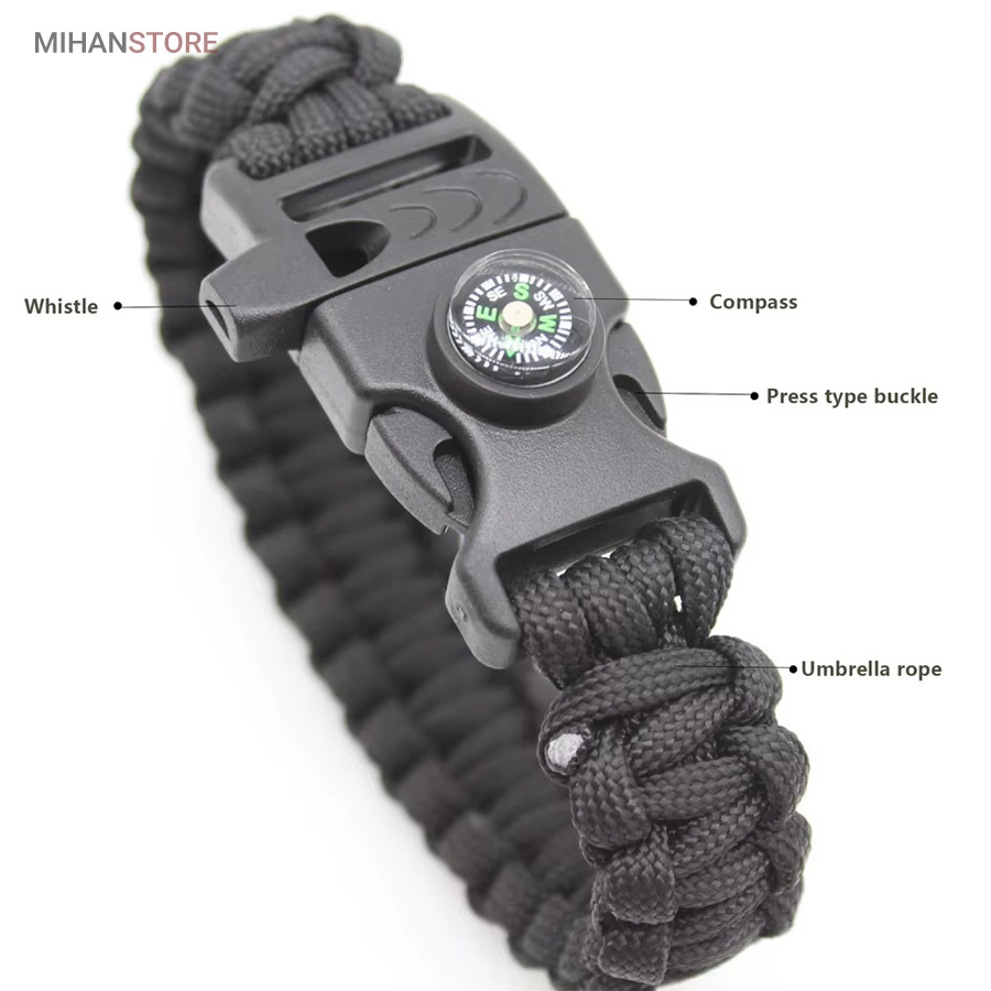 دستبند پاراکورد و نجات دارای وسایل ضروری برای بقا در طبیعت است، به وسیلۀ این دستبند می‌‌توانید به راحتی آتش روشن کنید، از ارتفاع پایین بیایید، مسیریابی کنید، ماهیگیری انجام دهید و… اگر به شکل دستبند پاراکورد و نجات نگاه کرده باشید متوجه می‌‌شوید که مانند یک طناب است، جالب است بدانید که طناب پاراکورد ساخته شده برای چتربازی هم مورد استفاده قرار می‌‌گیرد و از مقاومت و استحکام بسیار بالایی برخوردار است. مقاومت بالای این طناب به میزانی است که می‌‌توانید یک وزنه‌‌ی 200 کیلوگرمی را بدون نگرانی به آن متصل کنید، از طناب پاراکورد علاوه بر چتربازی می‌‌توان در ماهیگیری، بند آوردن خونریزی، درست کردن آتش،  فرود آمدن از ارتفاع، طناب نگهدارنده‌‌‌‌ی چادر، درست کردن پناهگاه و… نیز استفاده کرد.دستبند پاراکورد و نجات معمولا از 7 تا 9 رشته طناب با طولی 3 تا 4 متری تشکیل شده است که می‌‌توان برای مصارف مختلف در سفر از آن استفاده کرد. دارای ضروریات مربوط به یک سفر بوده و همچنین می‌‌تواند به دلیل زیبایی آن نیز مورد استفاده قرار گیرد، این وسیلۀ کاربردی می‌‌تواند کادوی بسیار مناسبی برای افرادی باشد که بسیار در طبیعت سفر می‌‌کنند. قطب نما، سوت اضطراری این سوت سطح سر و صدا را می‌تواند تا 110 db ایجاد کند و به امدادگران سیگنال دهد و چاقو که برای برش طناب و مواقع ضروری مورد استفاده قرار می‌گیرد و پشت چاقو در قسمت بالا هم دندانه‌هایی قرار دارد.
