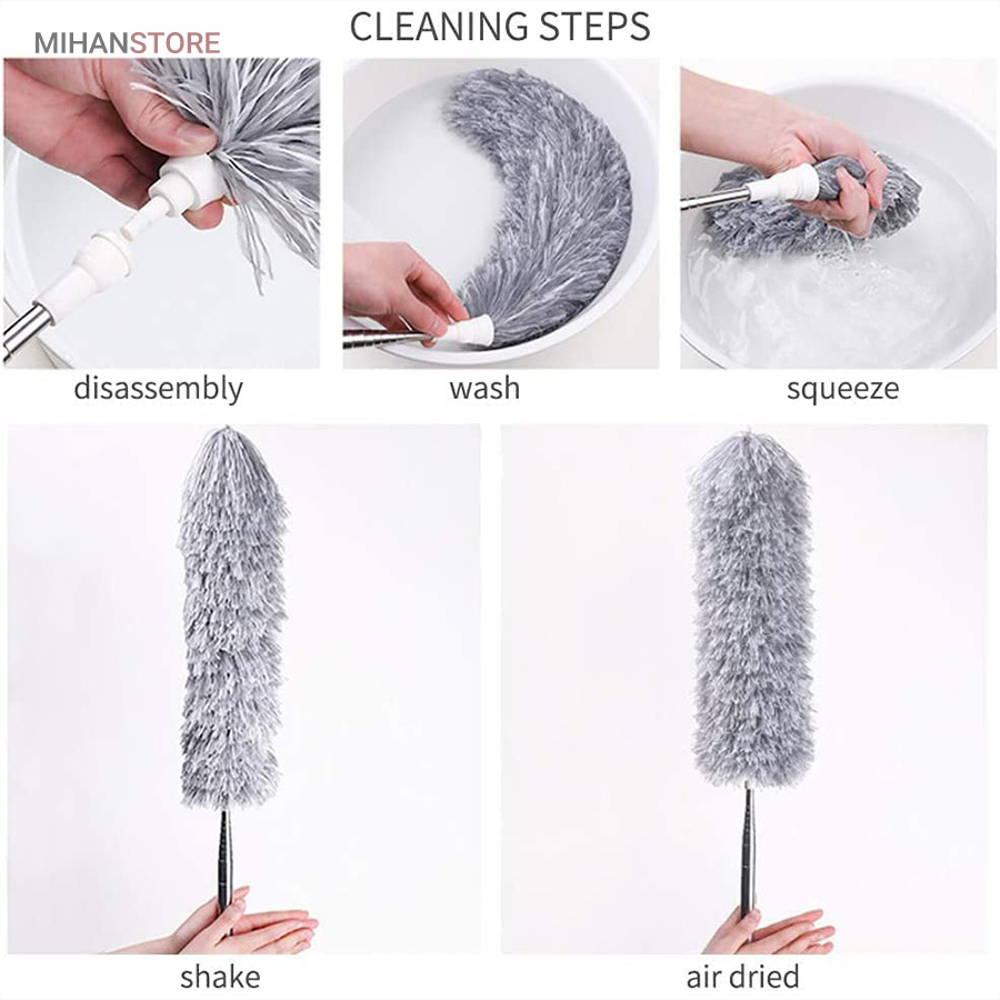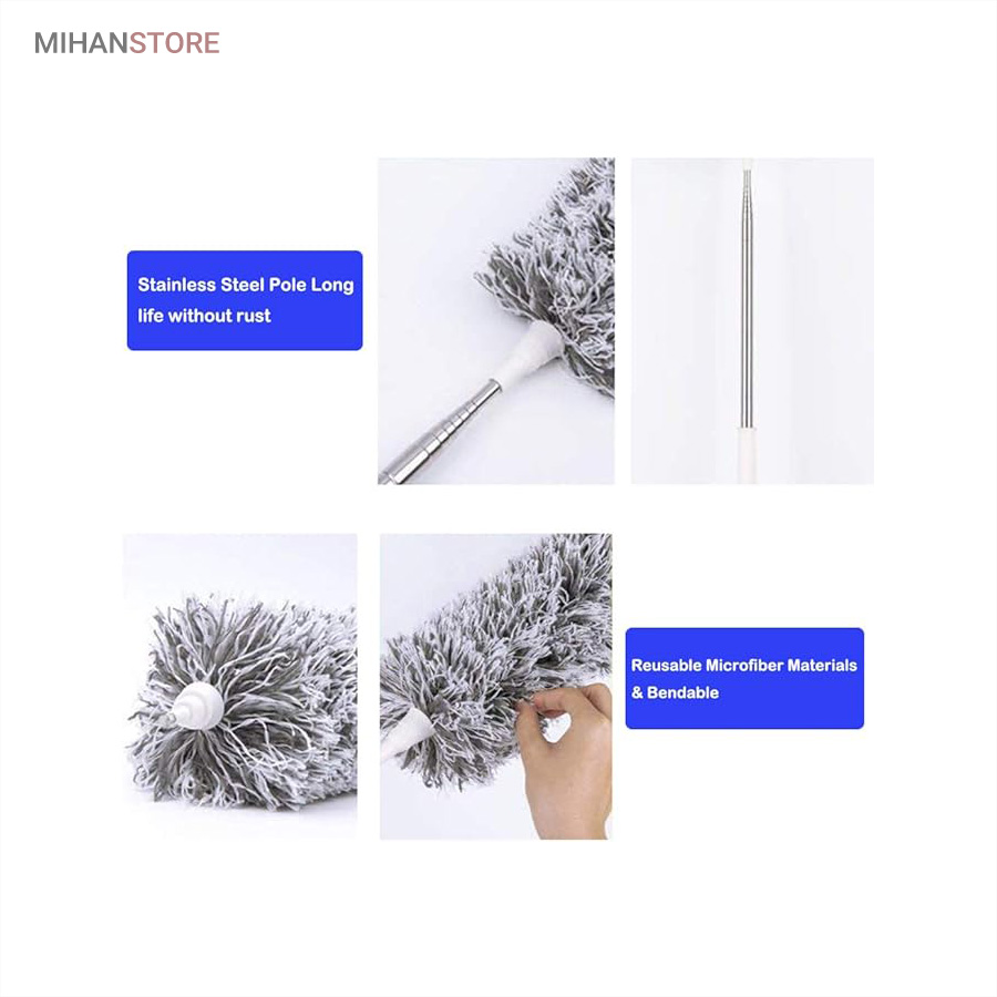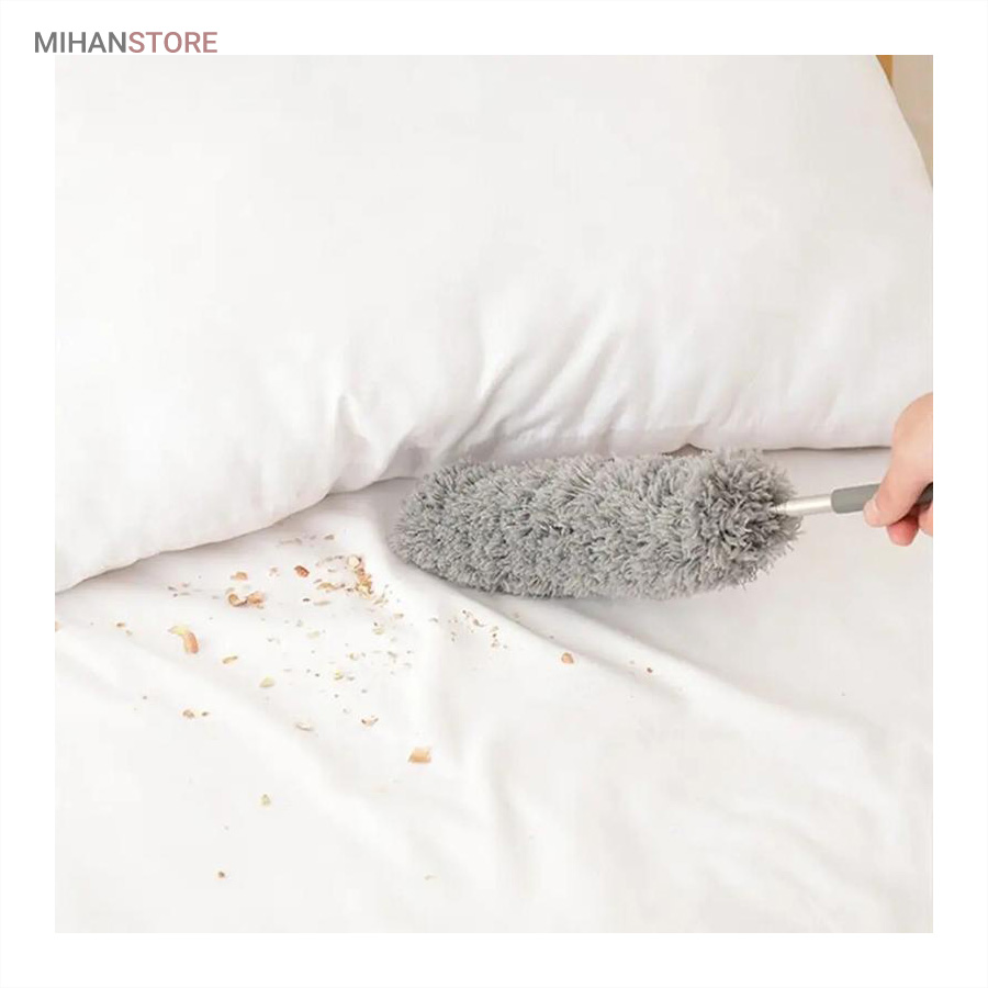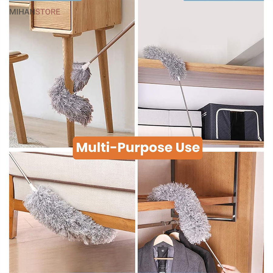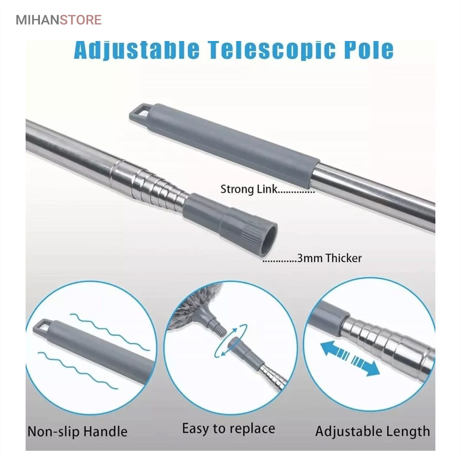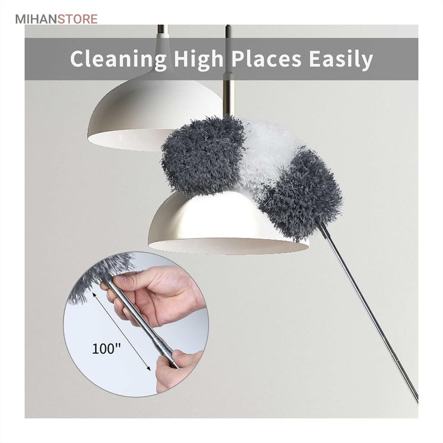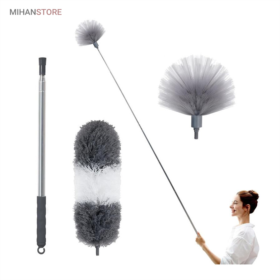 یک ابزار حرفه‌ای و کاربردی برای تمیزکاری سطوح بلند و نقاطی است که دسترسی به آن‌ها معمولاً دشوار است. این محصول با دسته بلند تلسکوپی و سری قابل‌انعطاف، امکان گردگیری سقف، گوشه‌ها، لوسترها، پرده‌ها، بالای کابینت و پشت وسایل بزرگ را بدون نیاز به نردبان فراهم می‌کند.  دسته این گردگیر از آلیاژ سبک و مقاوم ساخته شده و قابلیت تنظیم طول تا ۲.۵ متر را دارد. این ویژگی باعث می‌شود بتوانید بسته به نیاز، طول دسته را کوتاه یا بلند کرده و با تسلط کامل عملیات تمیزکاری را انجام دهید. وزن سبک دسته مانع خستگی دست در استفاده طولانی‌مدت می‌شود و طراحی ارگونومیک آن کنترل بهتری هنگام کار فراهم می‌کند.  سری گردگیر از الیاف میکروفایبر با قدرت جذب بالا تولید شده است که گردوغبار، مو و ذرات ریز را به‌خوبی جذب کرده و از پخش شدن آن‌ها در هوا جلوگیری می‌کند. این الیاف به سطوح حساس مانند شیشه، چوب و لوازم تزئینی آسیبی نمی‌زنند و برای نظافت ایمن کاملاً مناسب هستند.  یکی از مهم‌ترین مزایای این گردگیر، چندحالته بودن سری است. سری انعطاف‌پذیر آن قابلیت خم شدن و تنظیم زاویه دارد و می‌تواند به‌راحتی به گوشه‌ها، کنج‌ها و نقاط نامنظم دسترسی پیدا کند. همچنین در برخی مدل‌ها امکان جدا شدن سری برای شستشو وجود دارد که به افزایش عمر مفید محصول کمک می‌کند.